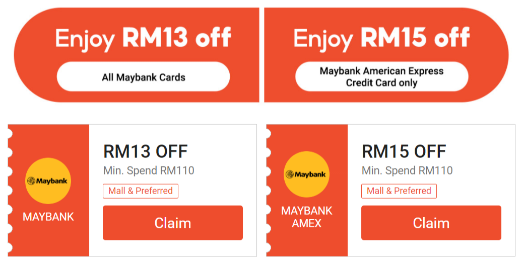 ③ Maybank Mastercard Visa & American Express Cards – 消费RM110,可折扣RM13【点击这里】