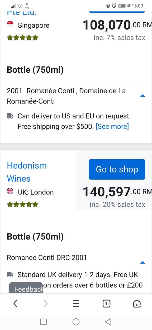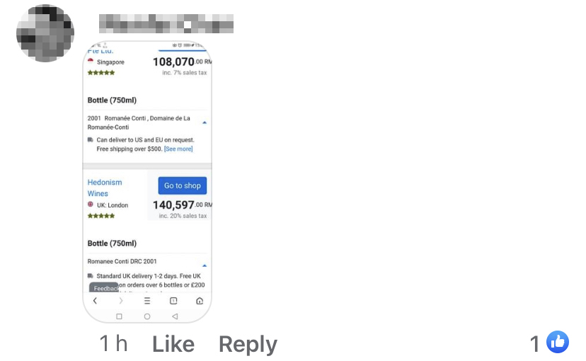 ▼ 网友们在网上搜出这瓶价值 RM120,000 的酒。