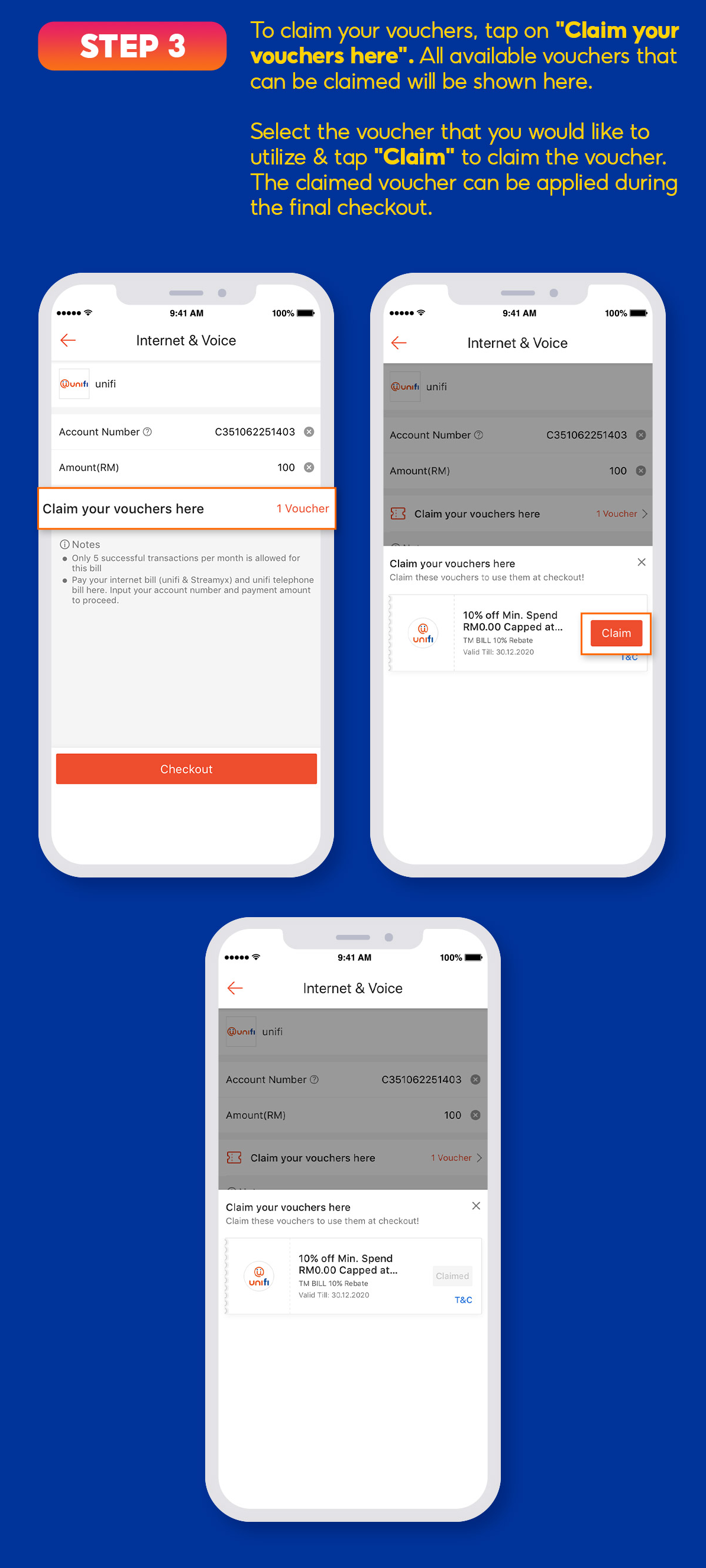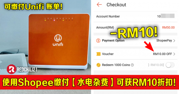 ▼ 例如:Unifi 账单原该缴付RM50,折扣RM10 优惠券之后,只需RM40!
