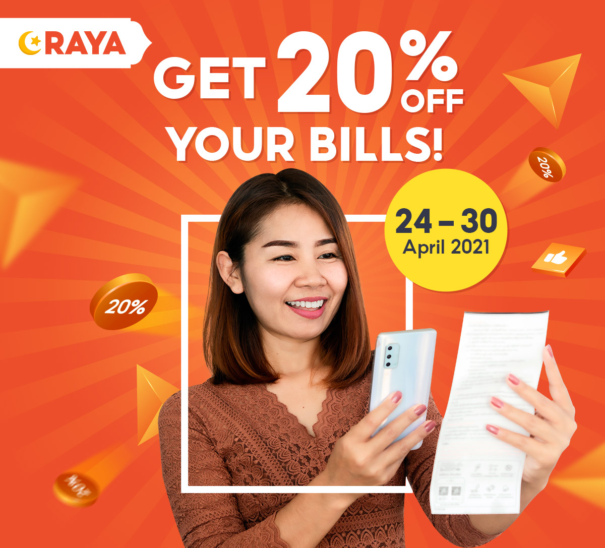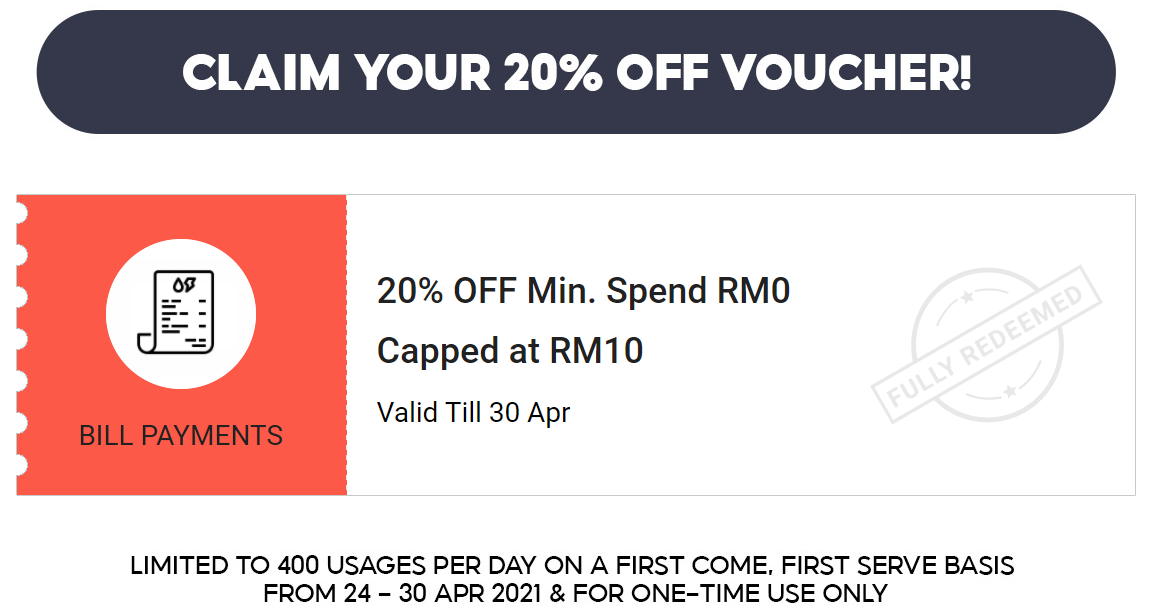 ① 缴付账单可获得20%折扣(高达RM10折扣)