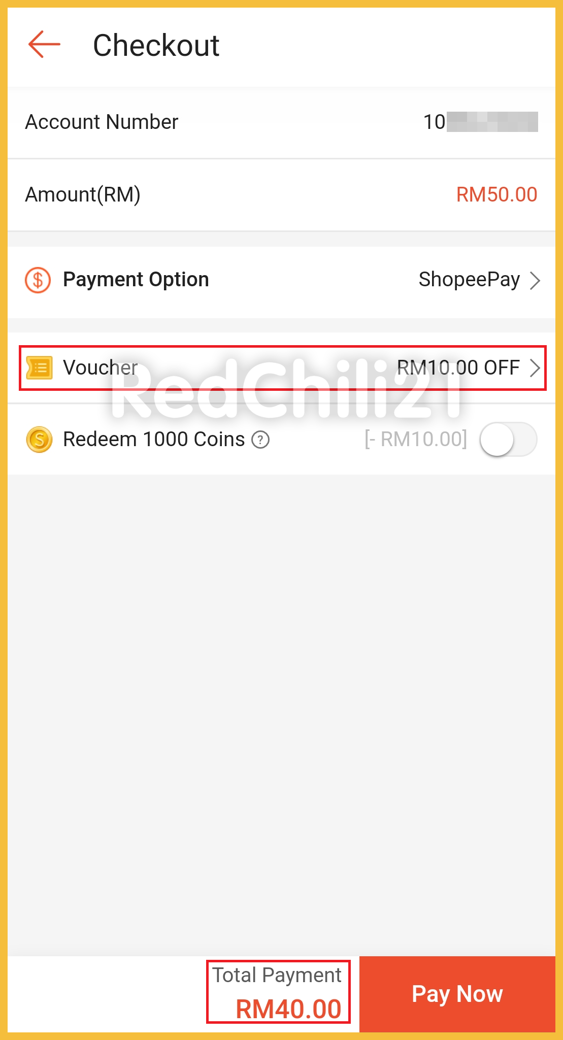 步骤7:系统会显示出折扣RM10的数额,点击「Pay Now」。