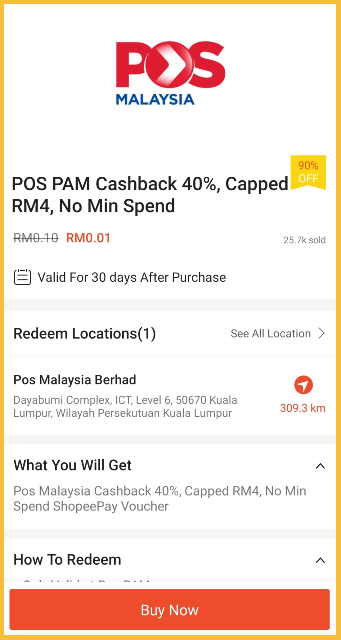 ▼ 如果你想缴付TNB 账单,其实你可通过Shopee 另一种方式,那就是使用RM0.01 购买POS PAM RM4 回扣券!(最低缴付RM10,可获得RM4回扣)