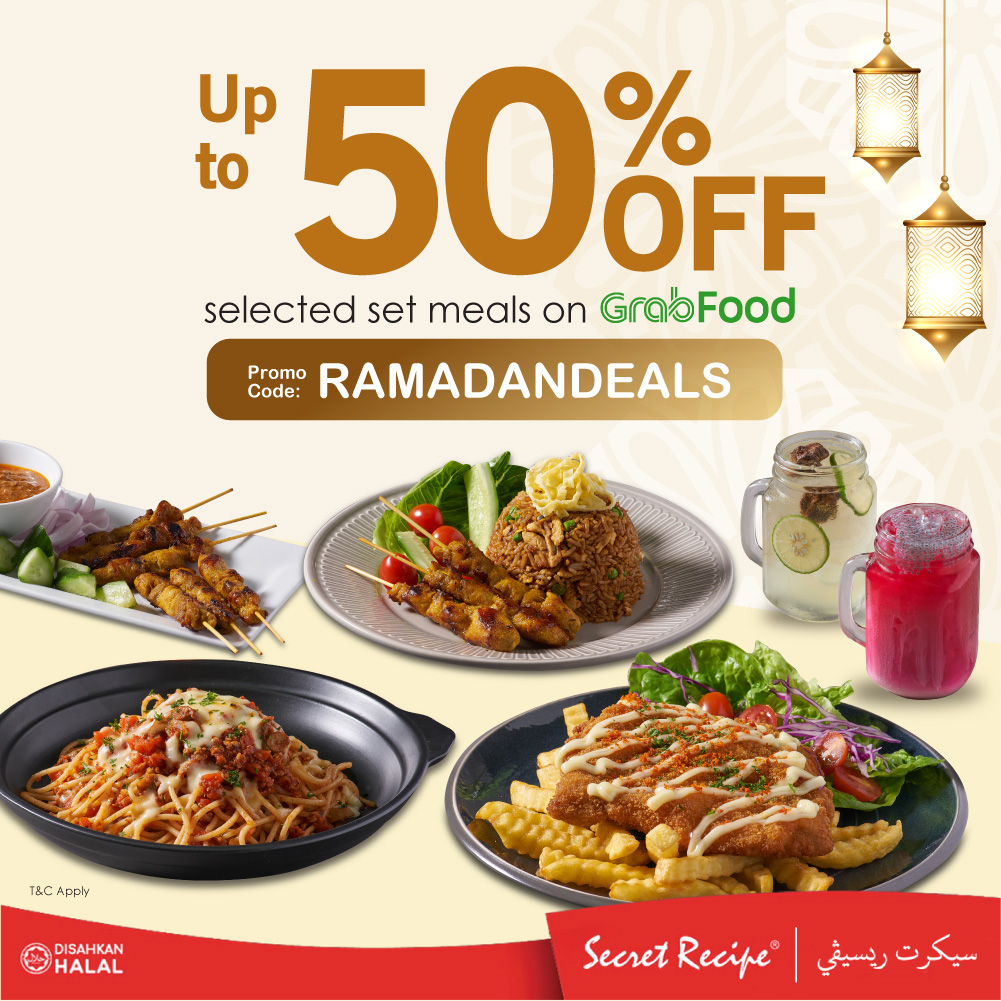 ii)在GrabFood 订购Secret Recipe,并使用【RAMADANDEALS】优惠码可获高达50%折扣!