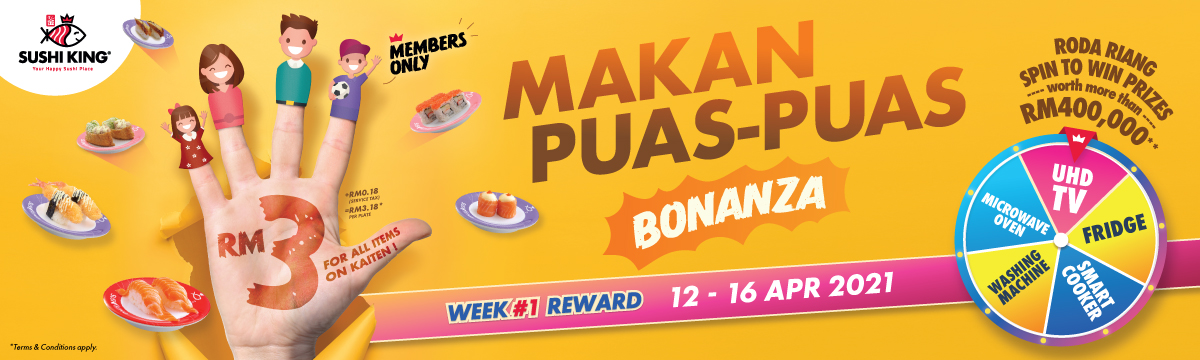 促销条件:所有Sushi King 分行(除了Ipoh Parade, Sushi King Kiosk 和Sushi King Deli)