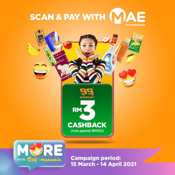▼ 在99 Speedmart 消费RM30,可获RM3 现金回扣