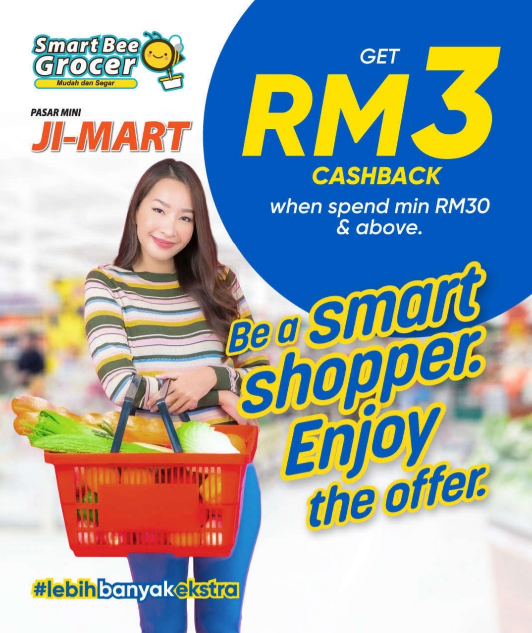 ▼ 在Smart Bee Grocer & Pasar Mini Ji-Mart 消费RM30,可获得RM3现金回扣(可获高达RM6)
