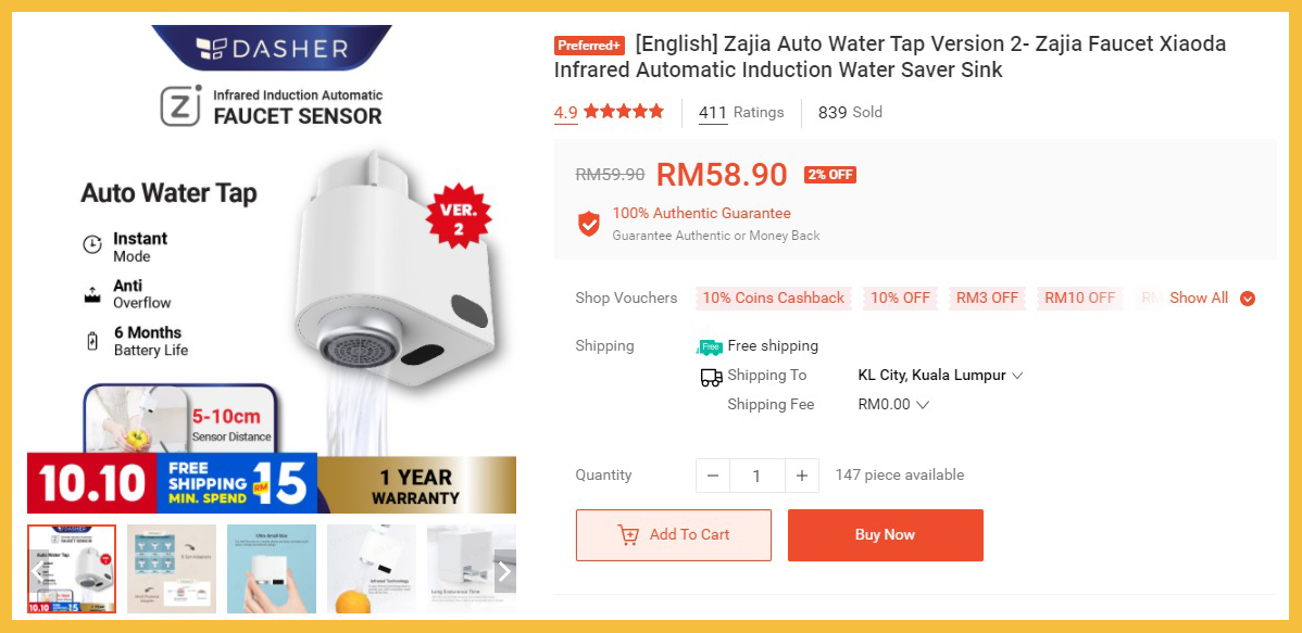 ▼ 这款Zajia 智能水龙头,售价只需RM58.90;购买【点击这里】