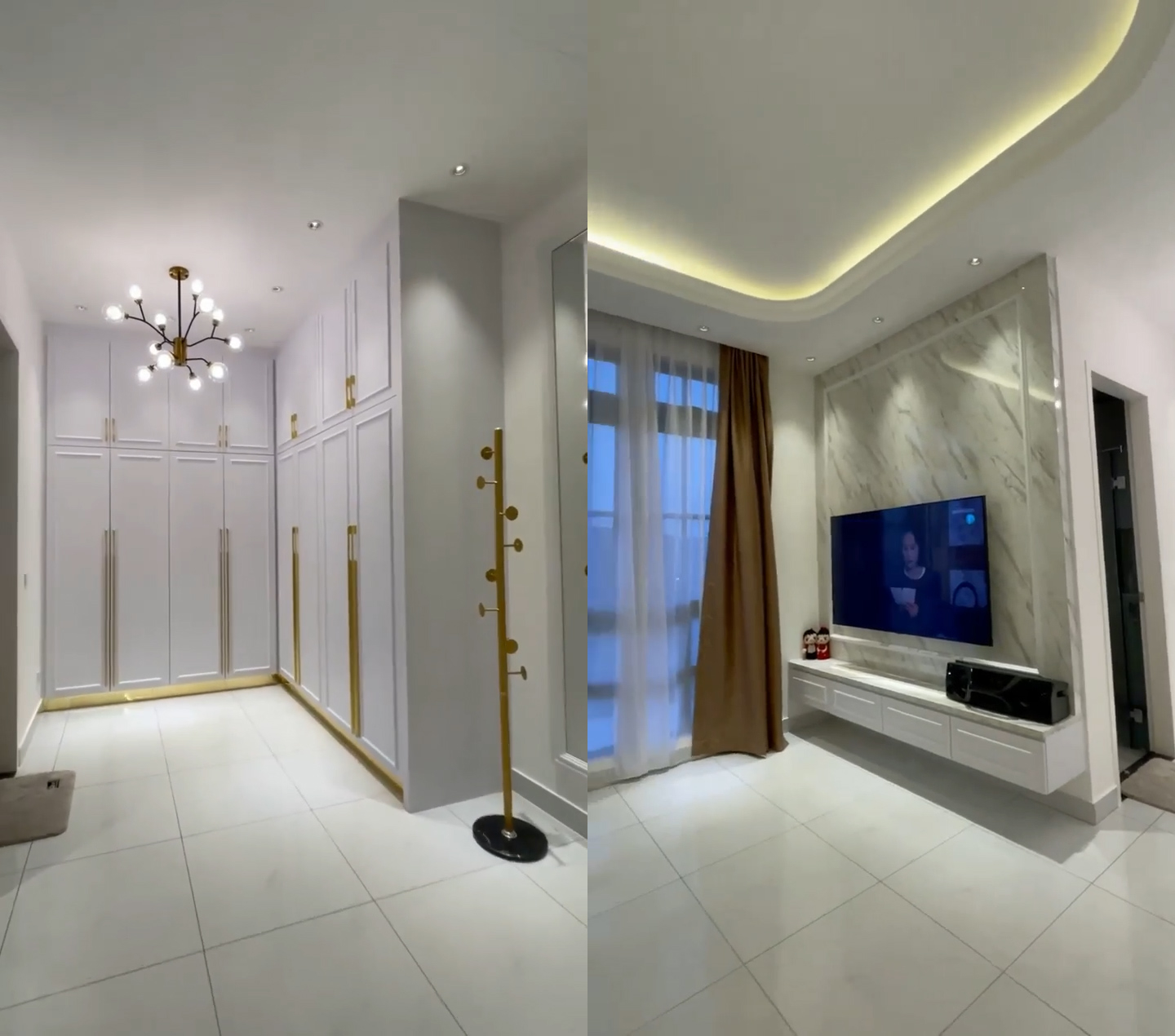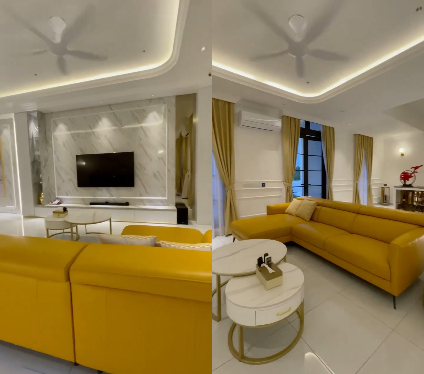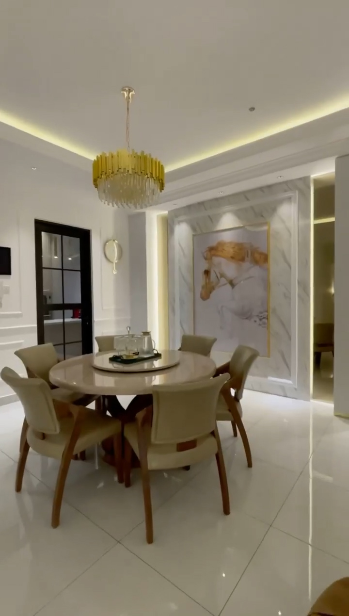 ▼ 客厅:大理石+金色的配色,简单却不失高级感!