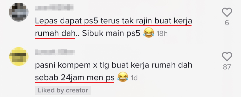 ▼「以后有了PS5,老公就忙着打游戏不做家务了。」哈哈!