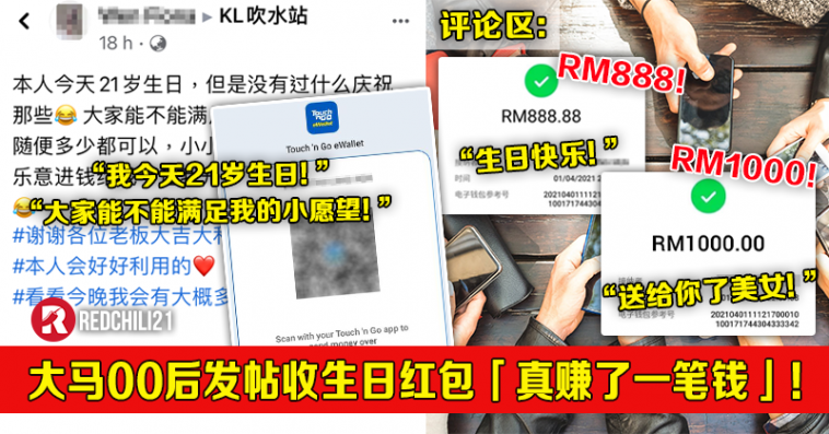大马00后脸书发帖收生日红包竟然「真赚了一笔钱」公布总金额!评论区:原来生日还有这种操作!