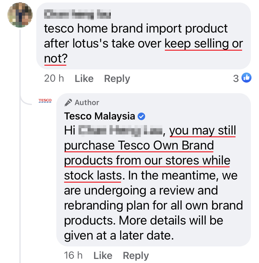 ▼ 相信这是最近大家都很关注的问题:Tesco 已经改名了,那这些自家品牌的商品还买得到吗?Tesco 官方回答:是可以的哦!