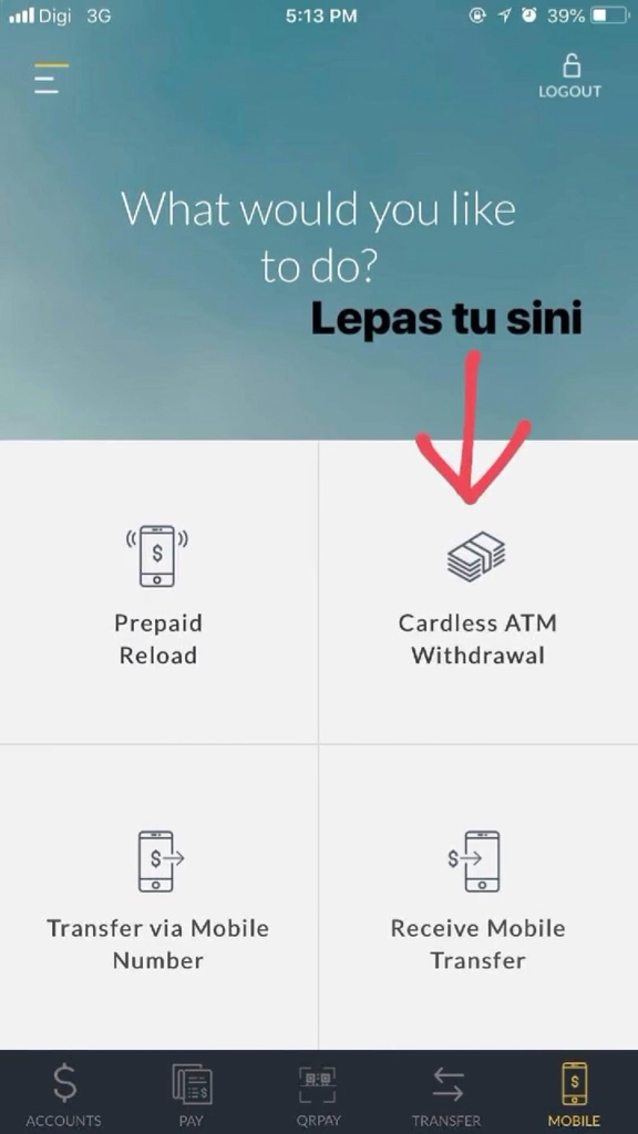 ▼ Step 6:亲临 Maybank 提款机,在屏幕选项中选择“无卡提款服务”。