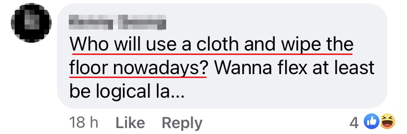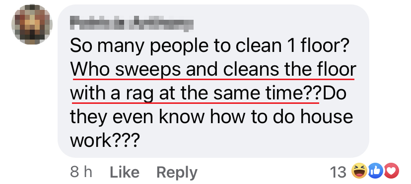 ▼ 网友忍不住吐槽:「现在这个年代还有谁会用抹布擦地板?」