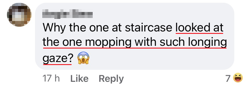 ▼「为什么楼梯上的那位用那种眼神看着那位抹地的?」