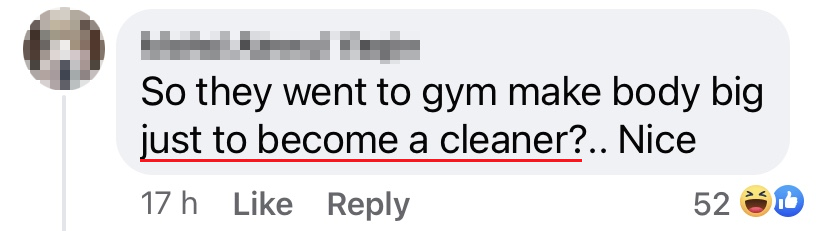 ▼「所以他们健身是为了当清洁工人?」
