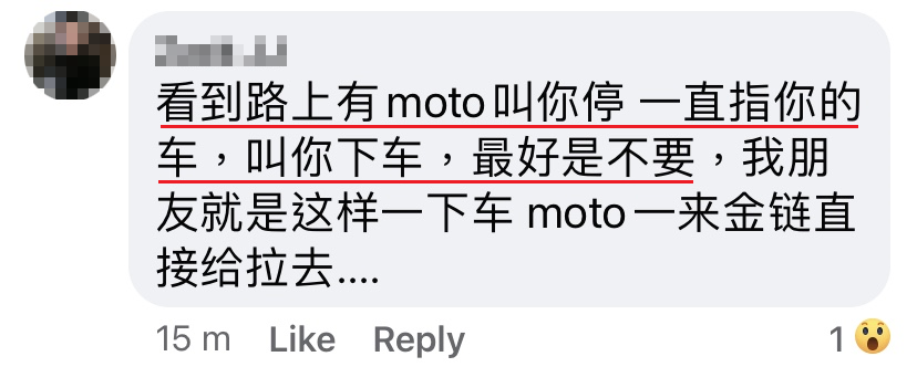 一名大马女网友日前在脸书分享丈夫差点遭打抢的经历,短短一天就累计超过3千人转发。