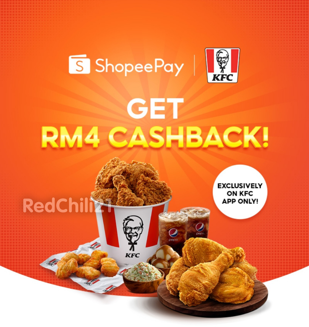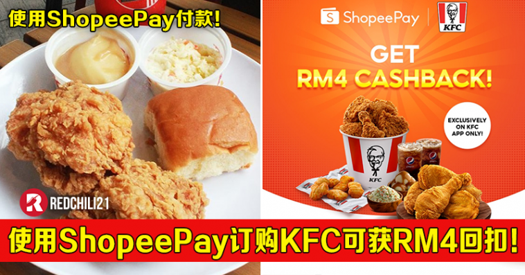 促销活动:在KFC App 订购并使用Shopee Pay 付款,可获得RM4 现金回扣