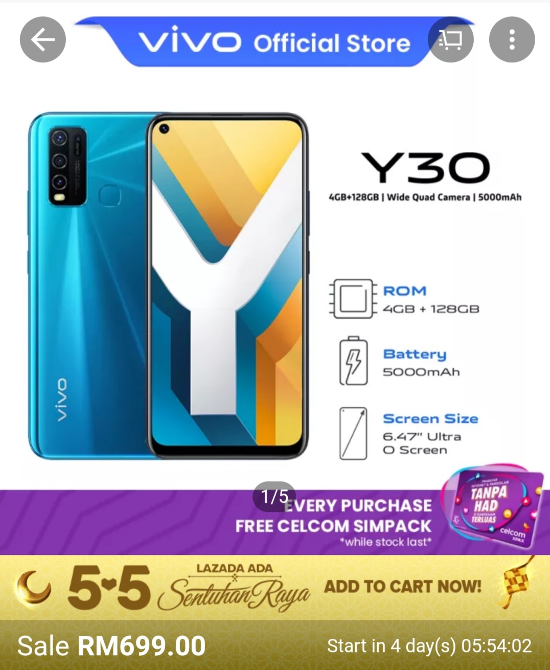 ▪ vivo Y30 Smartphone (4GB RAM+128GB ROM) – RM899 RM699【点击这里】