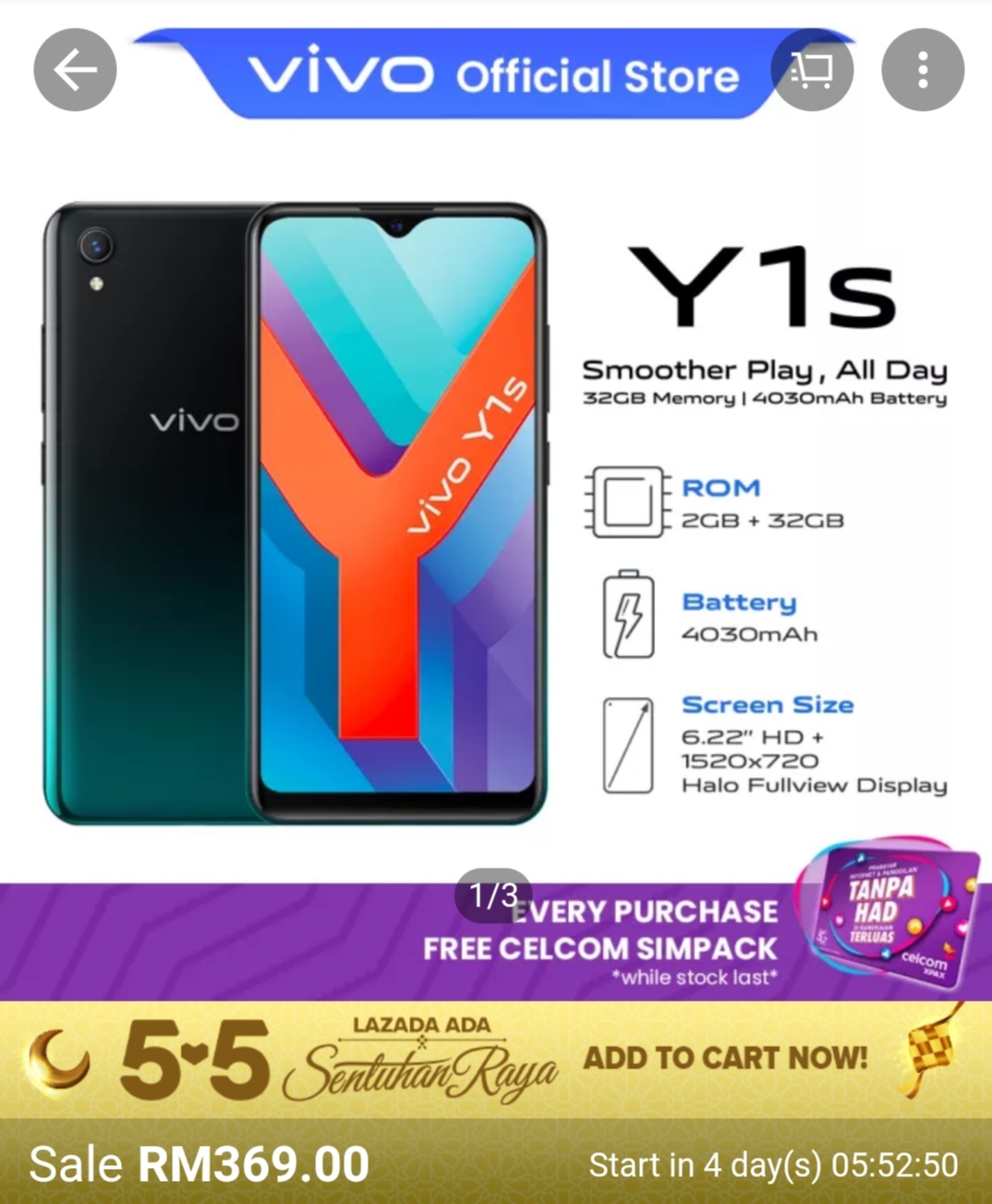 ▪ vivo Y1s (8GB + 128GB) – RM459 RM369【点击这里】