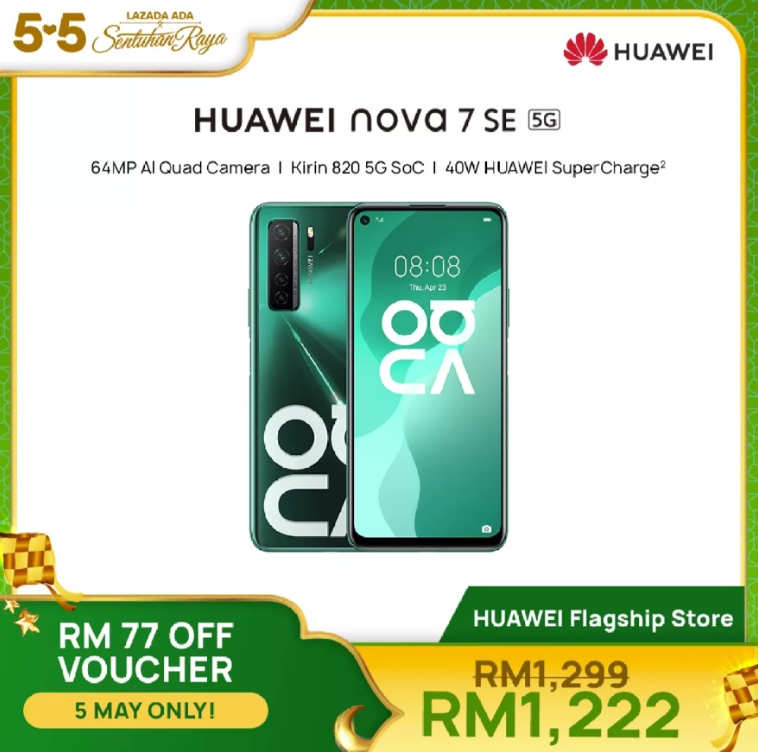 ▪ HUAWEI nova 7SE 5G (8GB RAM + 128GB ROM) – RM1299 RM1222【点击这里】