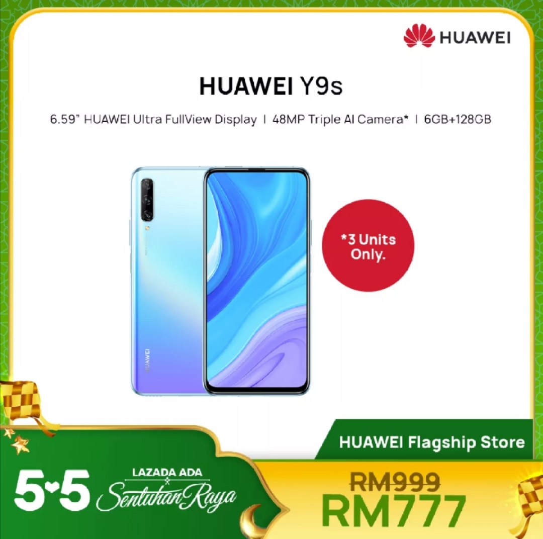 ▪ HUAWEI Y9s (6GB RAM +128GB ROM) – RM999 RM777【点击这里】