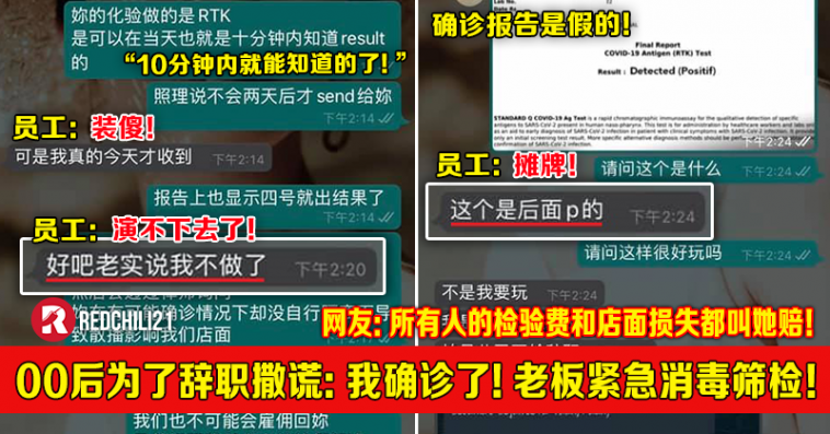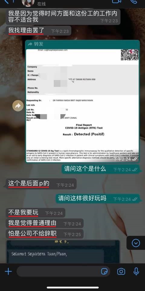 辞职的理由有很多种,只要理由是合理的,公司通常都会批准。但这位大马00后竟然为了辞职,撒谎称自己确诊新冠肺炎!