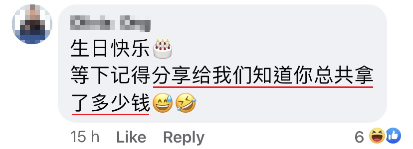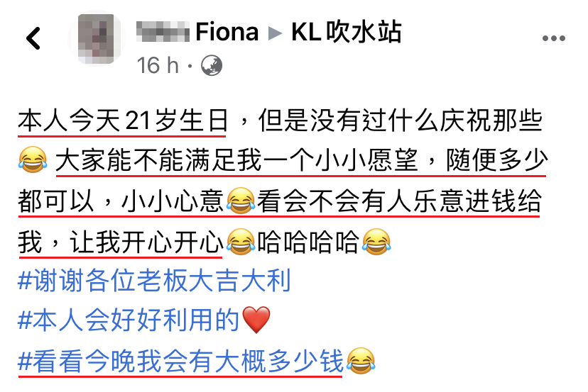 原来生日也是一条财路?!4月1日一名大马00后女生在“KL吹水站”PO文,指这天是她的生日,希望能够收到网友们的红包祝福,没想到还真的有不少人发红包给她!