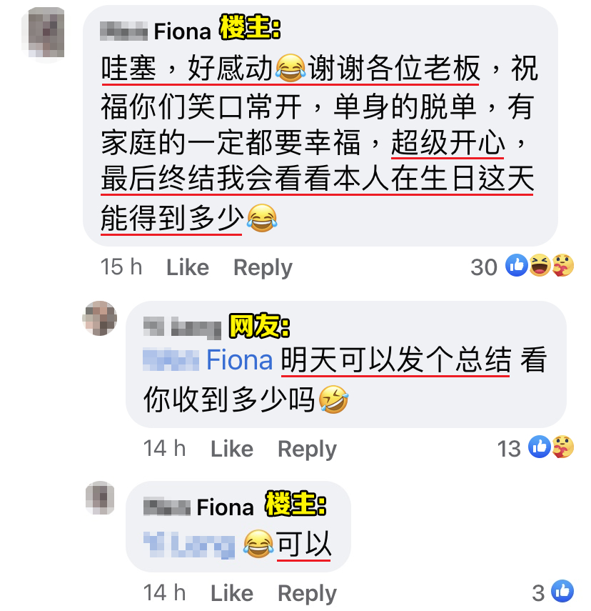 ▼ 寿星随后在评论区留言感谢发红包给她的人,同时也表示会再更新消息。