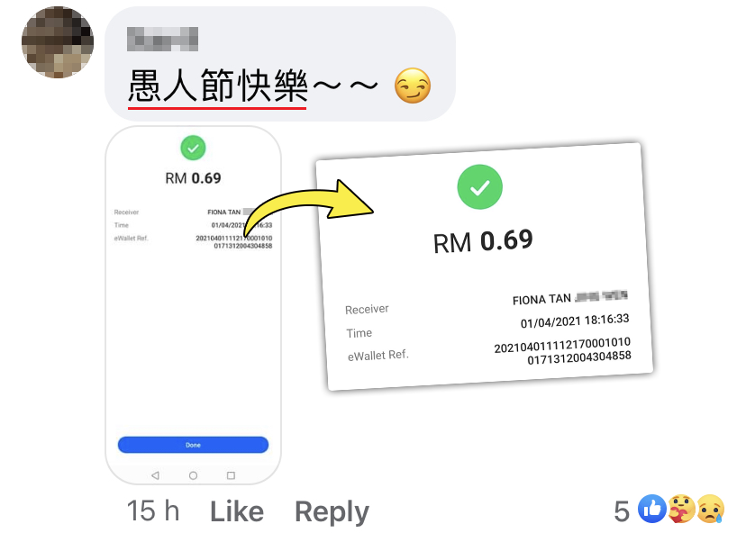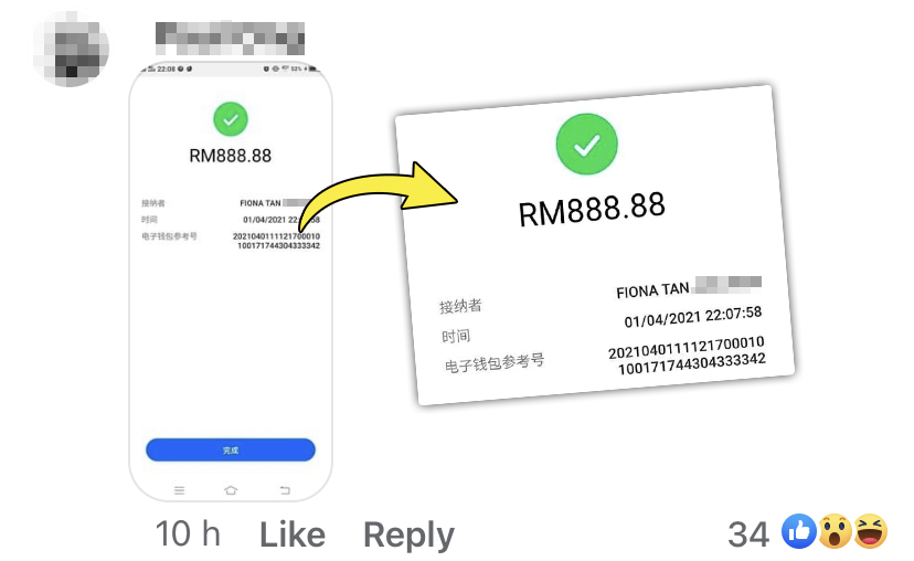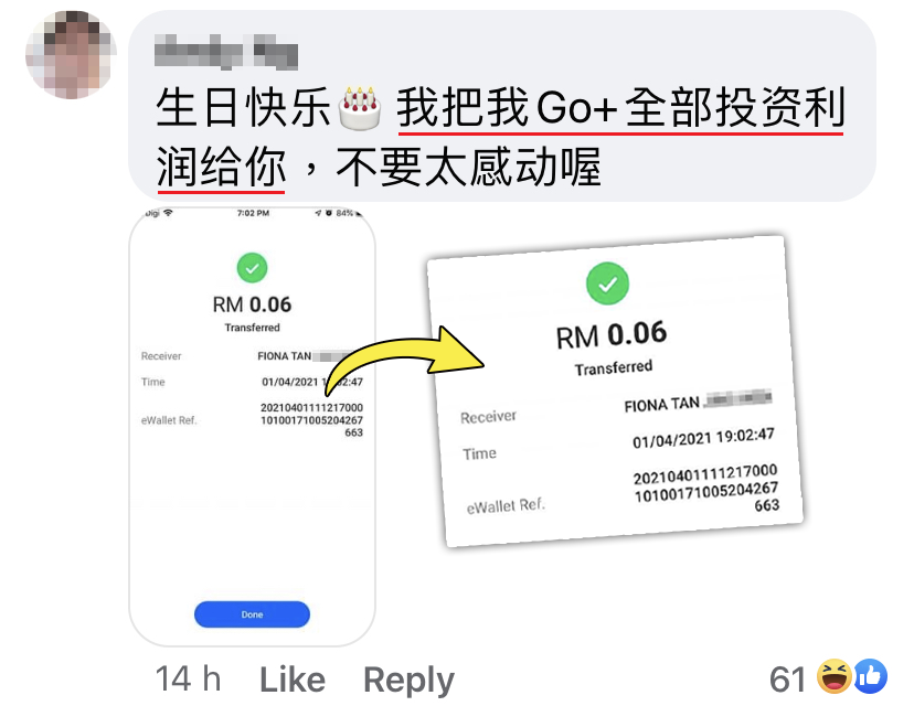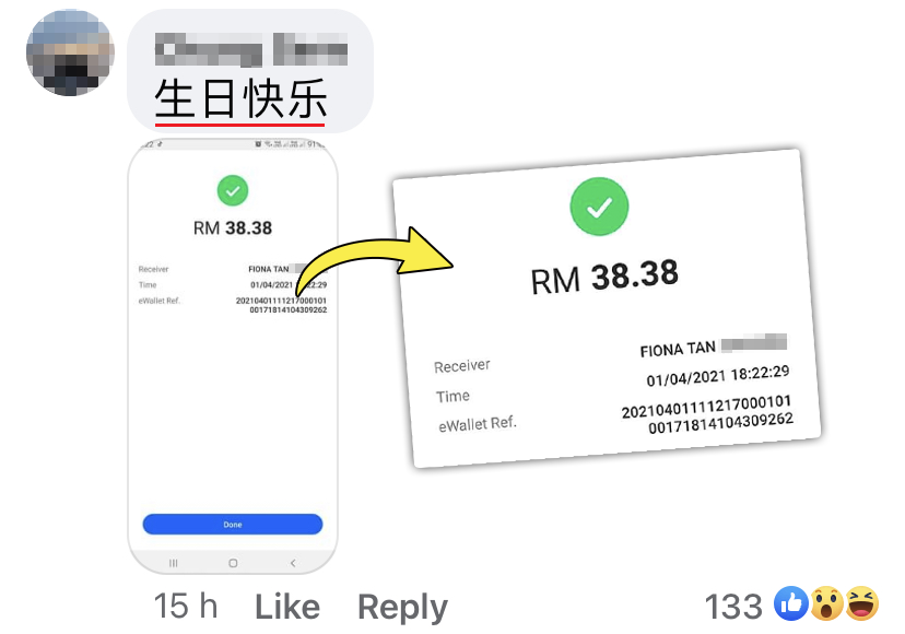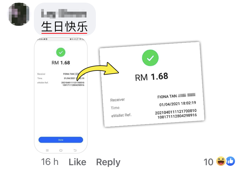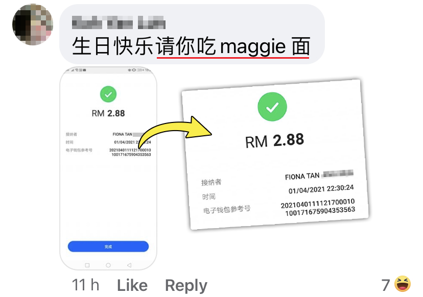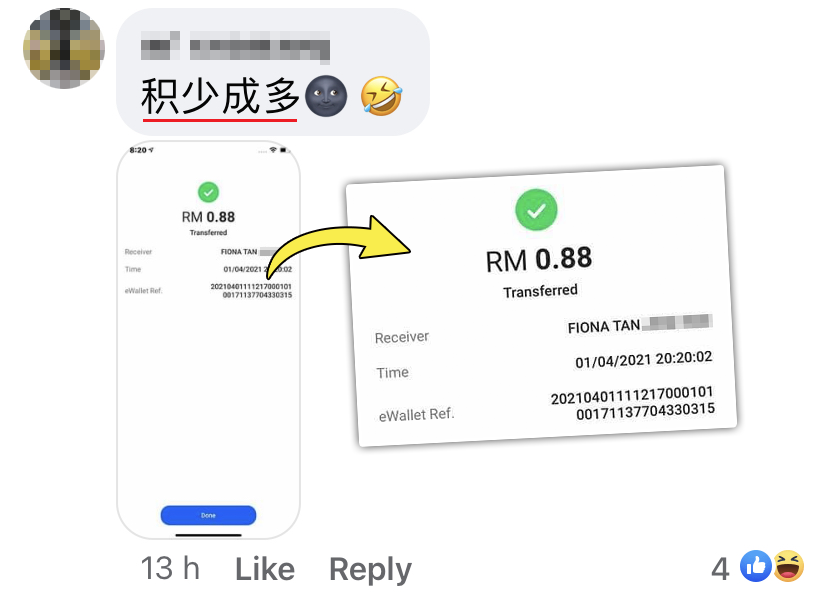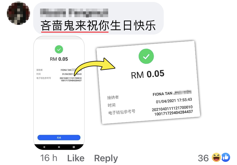 ▼ 寿星果然遵守诺言,今天就在评论区公布了总金额:RM400.22入账!