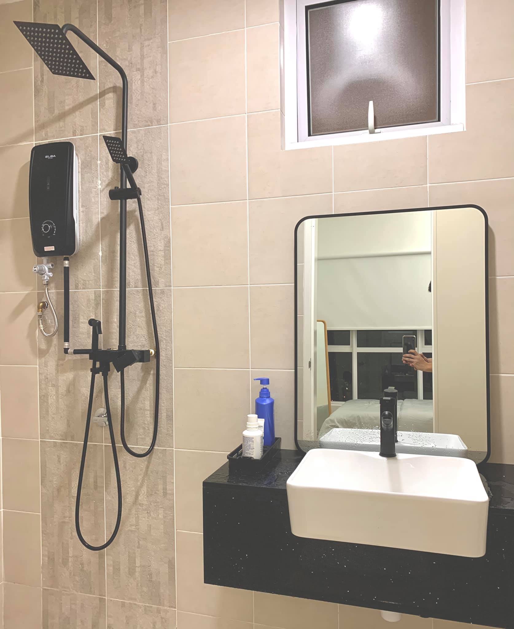 ▼ 主人房厕所不是我要的白色瓷砖。发展商给的洗脸盆瓷砖是黑色的,又不能拆掉,其他配件只能给它黑色系列咯(虽然我想要白色)。