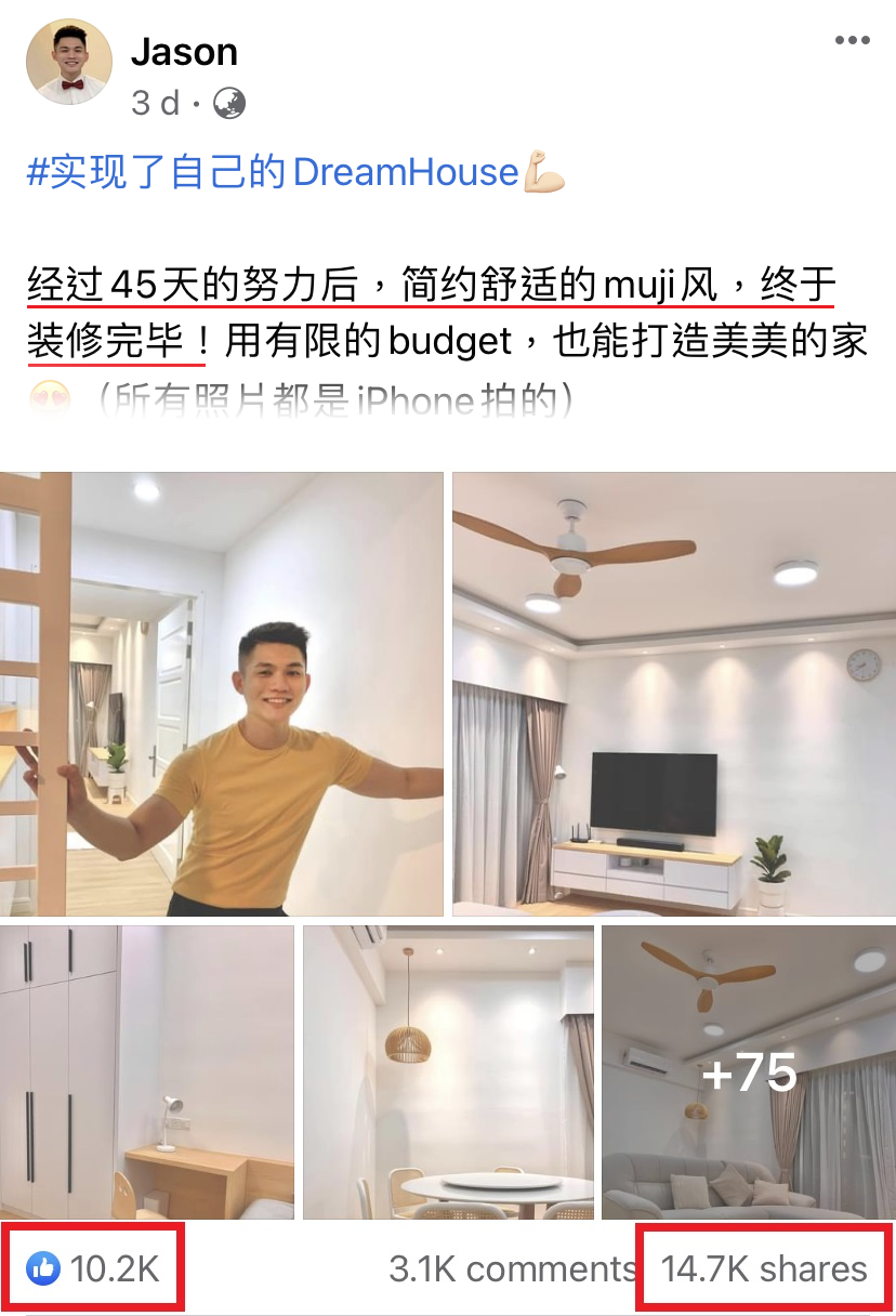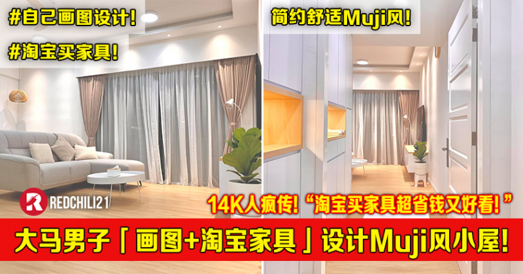 没有请室内设计师帮忙设计,年仅28岁的他,自己动手画图,设计出简约舒适 Muji 风的家!该帖子在3天内累计超过14,000次分享!