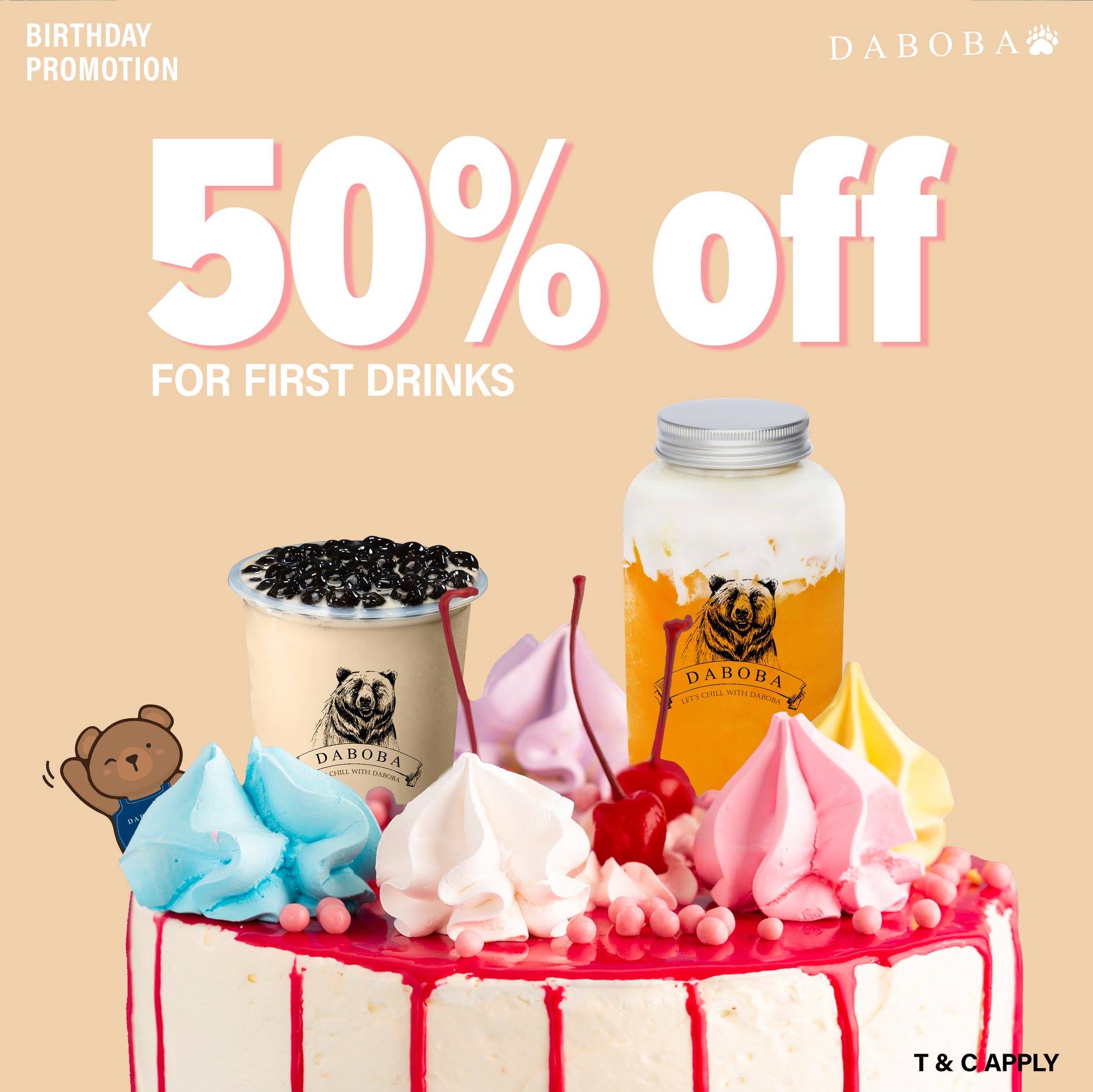 优惠活动:寿星购买第一杯饮料,可获得50%折扣