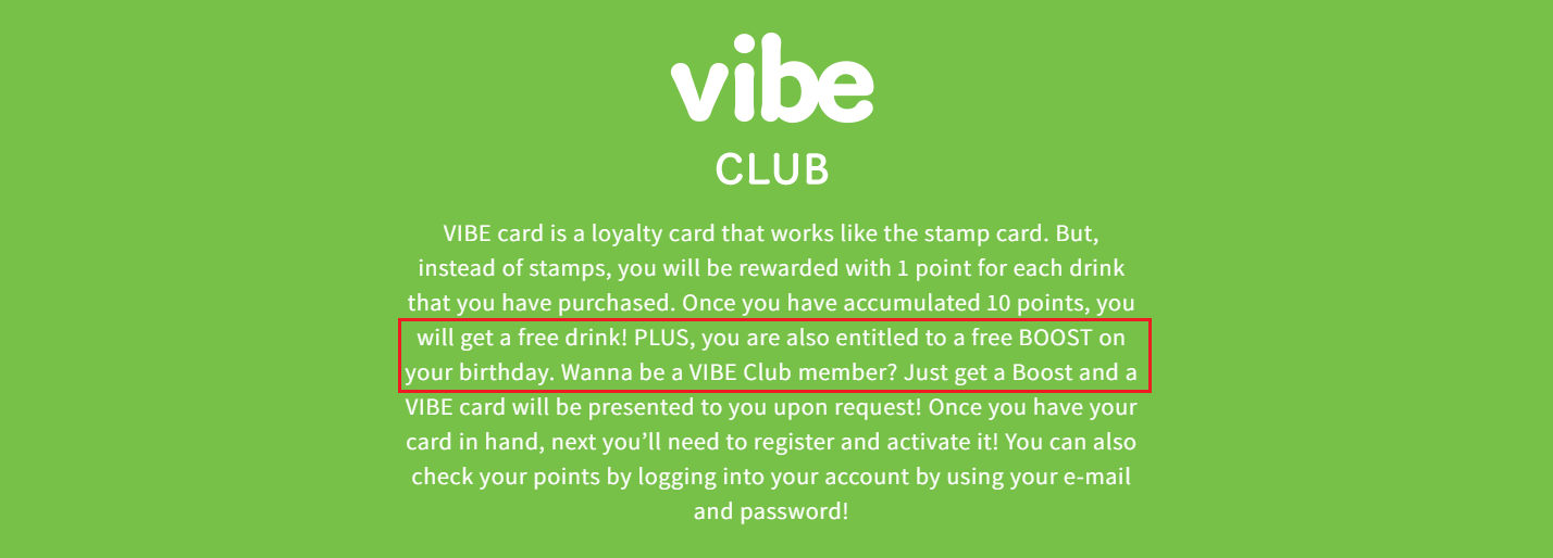 优惠活动:寿星可免费获得一杯Boost 饮料