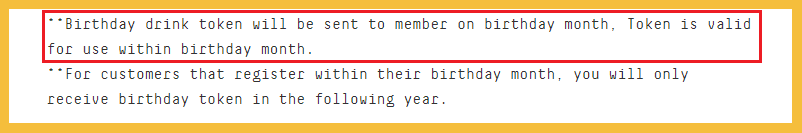 - 在生日月份内注册的新客户,您将会在第二年获得免费生日饮料