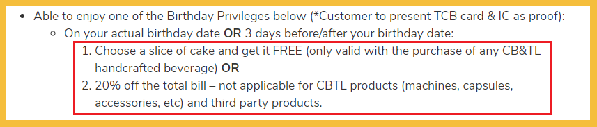 - 必须是The Coffee Beans会员并展示出会员卡及IC