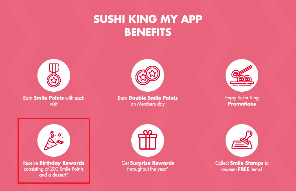 - 此优惠需要是Sushi King的会员及下载Sushi King的App才可获得