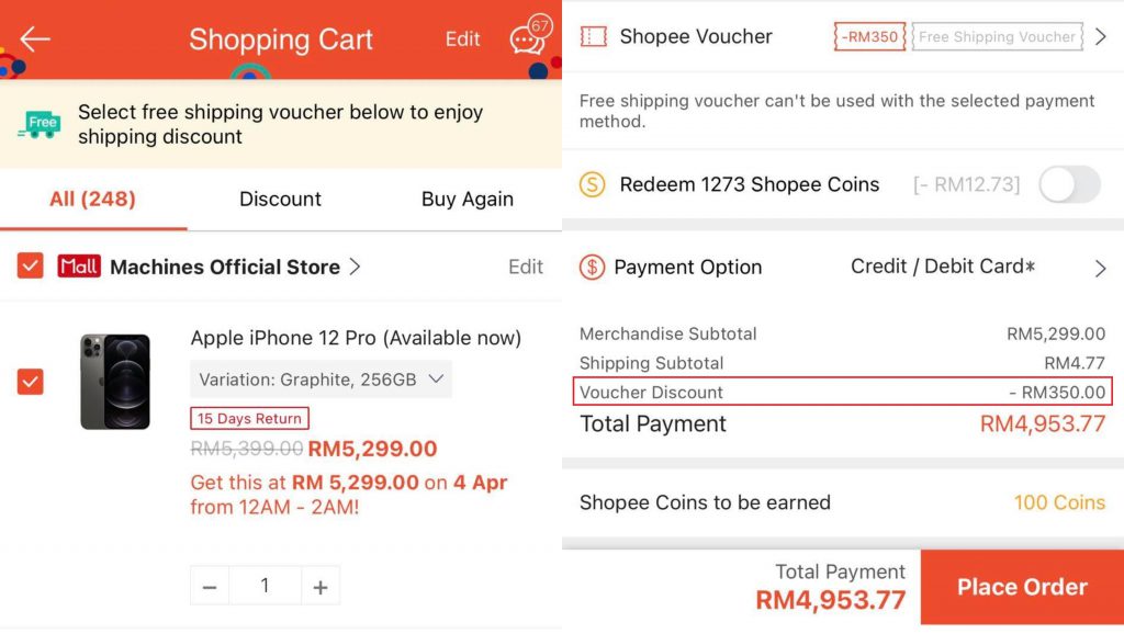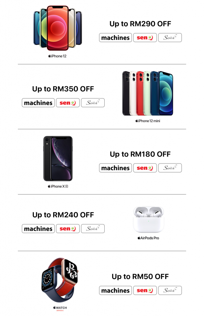 ※比如iPhone 12 Pro 256GB 折扣RM350后只需RM4953.77!
