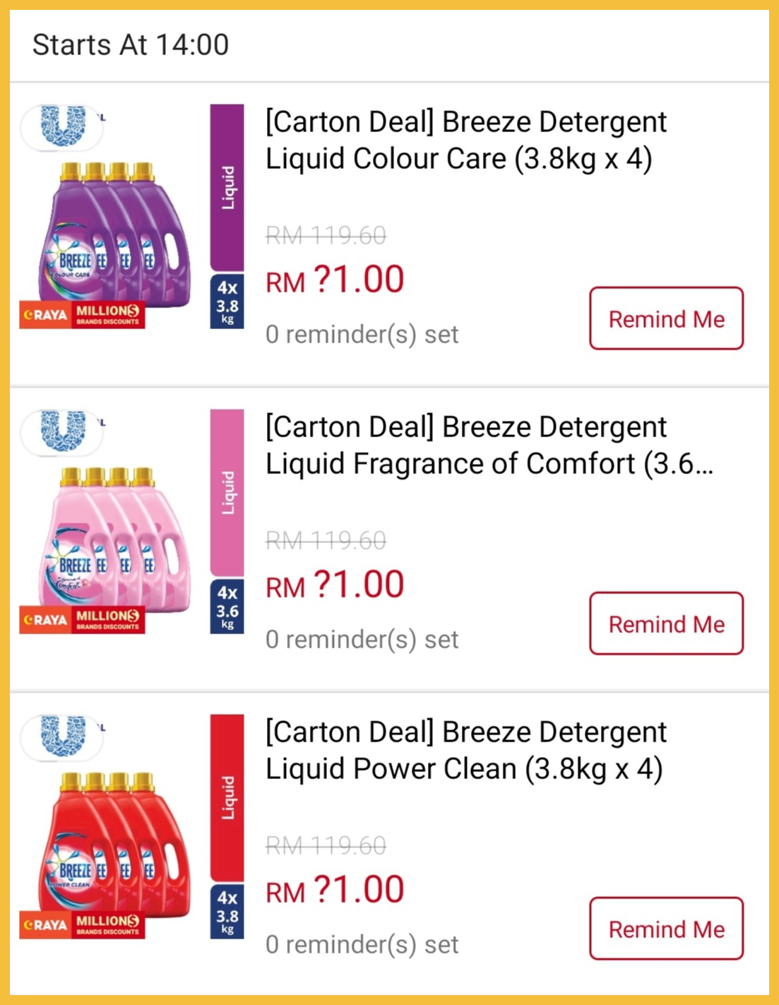 步骤2:购买4罐Breeze 洗衣液(原价RM71)【点击这里】