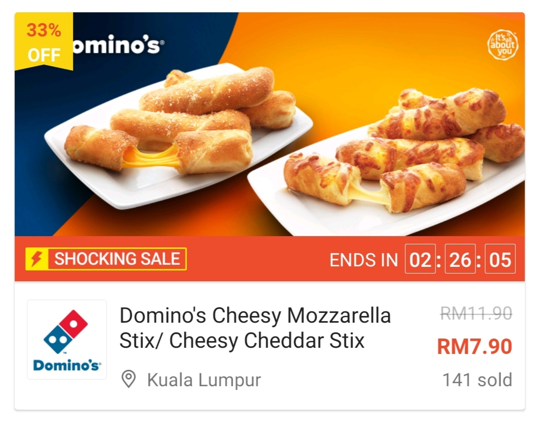② Domino’s Cheesy Mozzarella Stix/Cheesy Cheddar Stix —— 只需RM7.90(原价RM11.90)