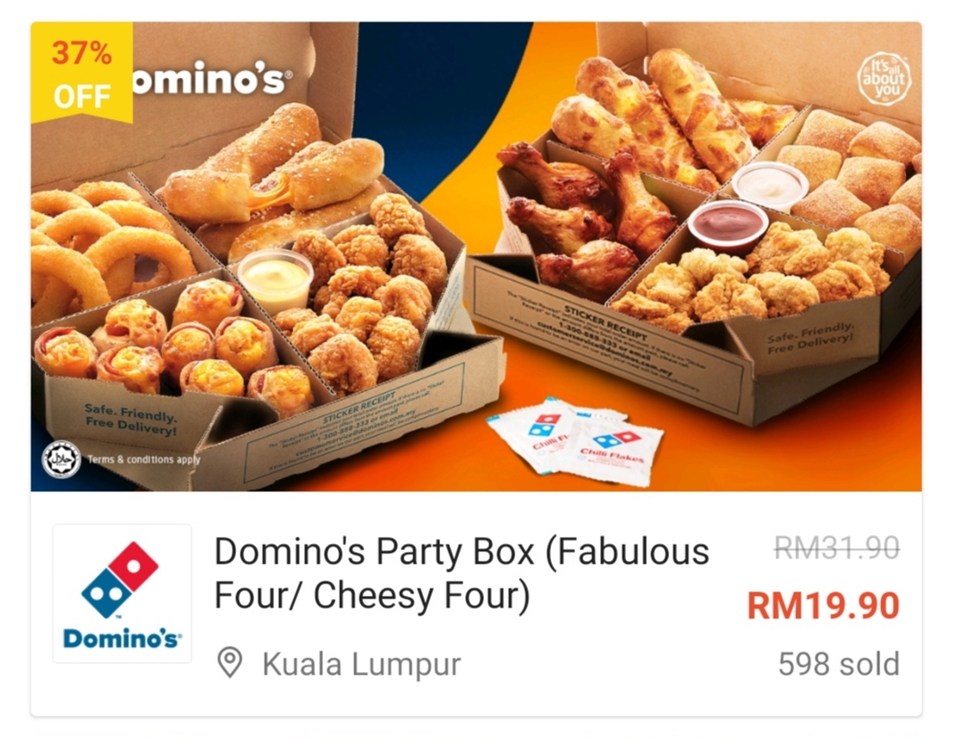 ⑤ Domino’s Party Box(Fabulous Four/Cheesy Four)—— 只需RM19.90(原价RM31.90)