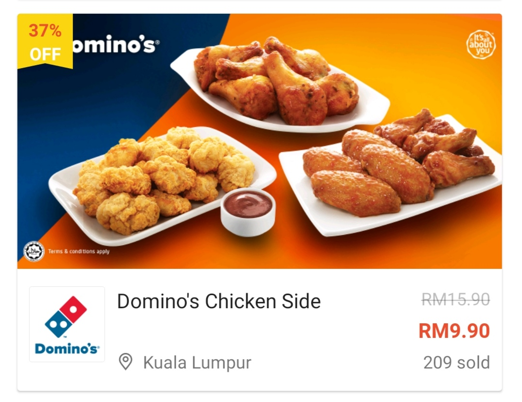 ⑧ 1份Domino’s Chicken Side —— 只需RM9.90(原价RM15.90)