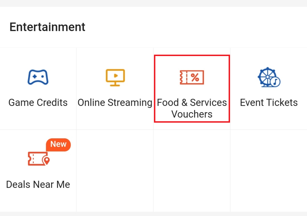 步骤1:打开Shopee App 在Deals,Tops-Ups & Bill 中,点击「Food & Service Vouchers」!