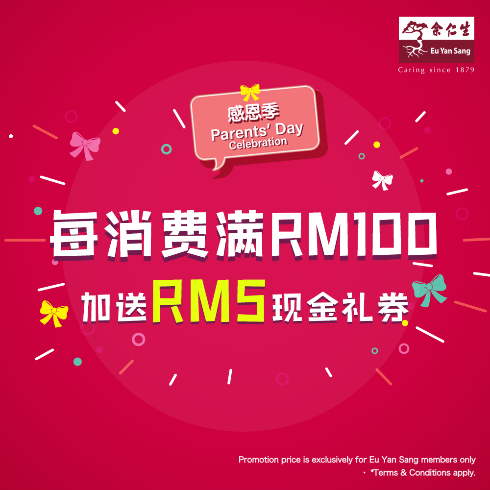 ① 每消费满RM100 加送RM5 现金礼券!| 促销网址:【点击这里】