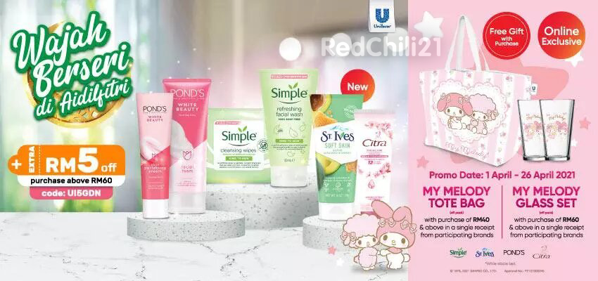 只要你在大马Guardian 官网购买指定Unilever 旗下护肤产品,就可免费获得My Melody 系列赠品!共推出2款My Melody 赠品:My Melody 包包和玻璃杯套组!