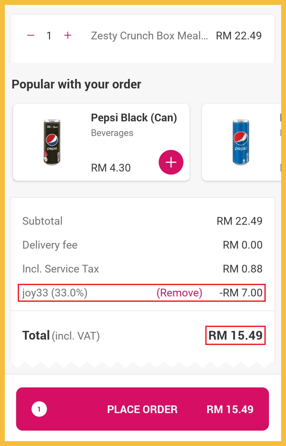 ▼ 一份Zesty Crunch Box Meal(原价RM22.49),折扣【JOY33】优惠码后只需RM15.49!