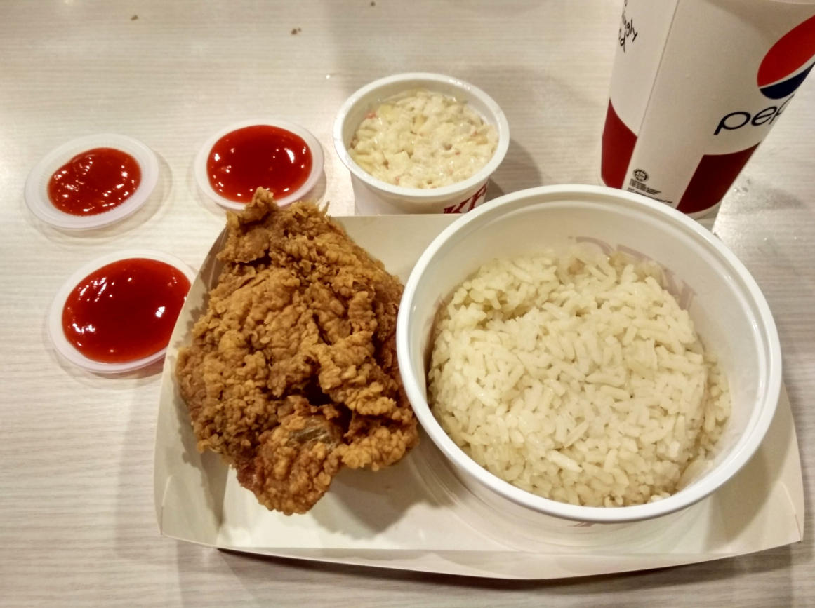 ▼ 1-pc Combo(一块炸鸡+油饭+沙拉+汽水)只需RM6.47!
