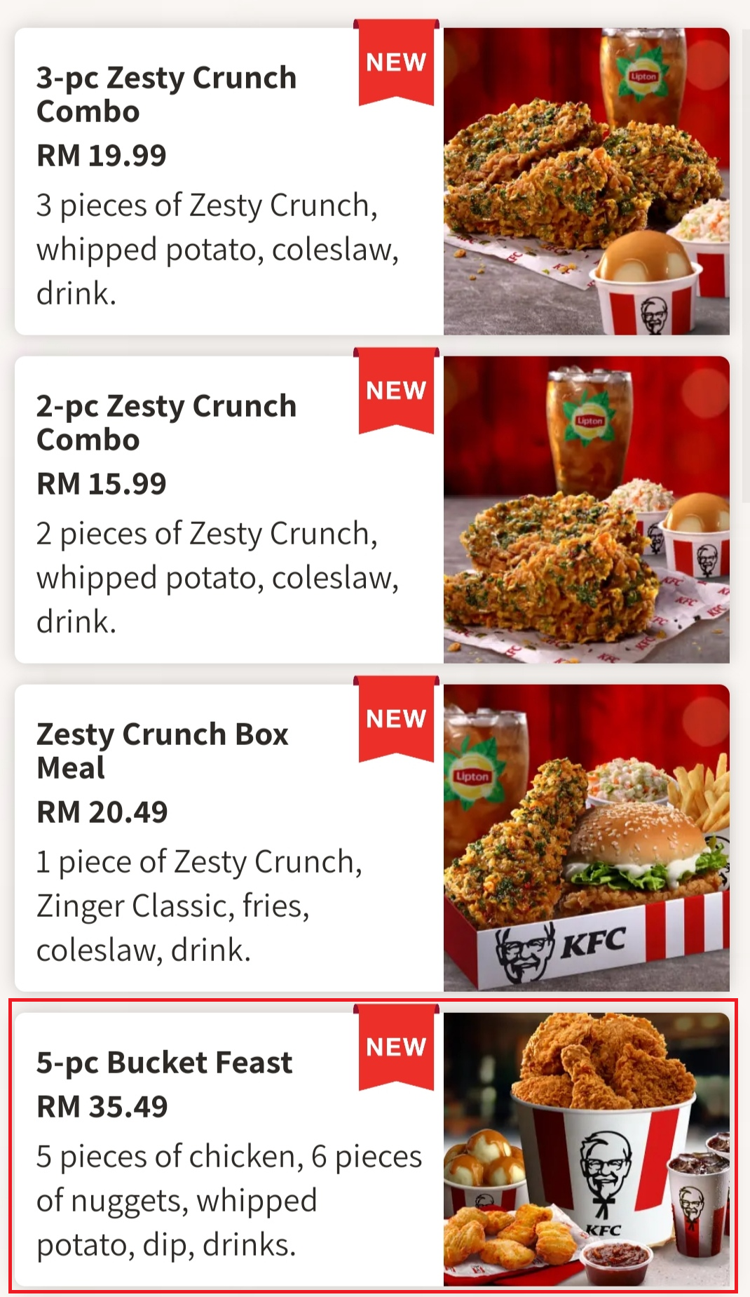 步骤2:选择你要点的套餐,例如:5-pc Bucket Feast。