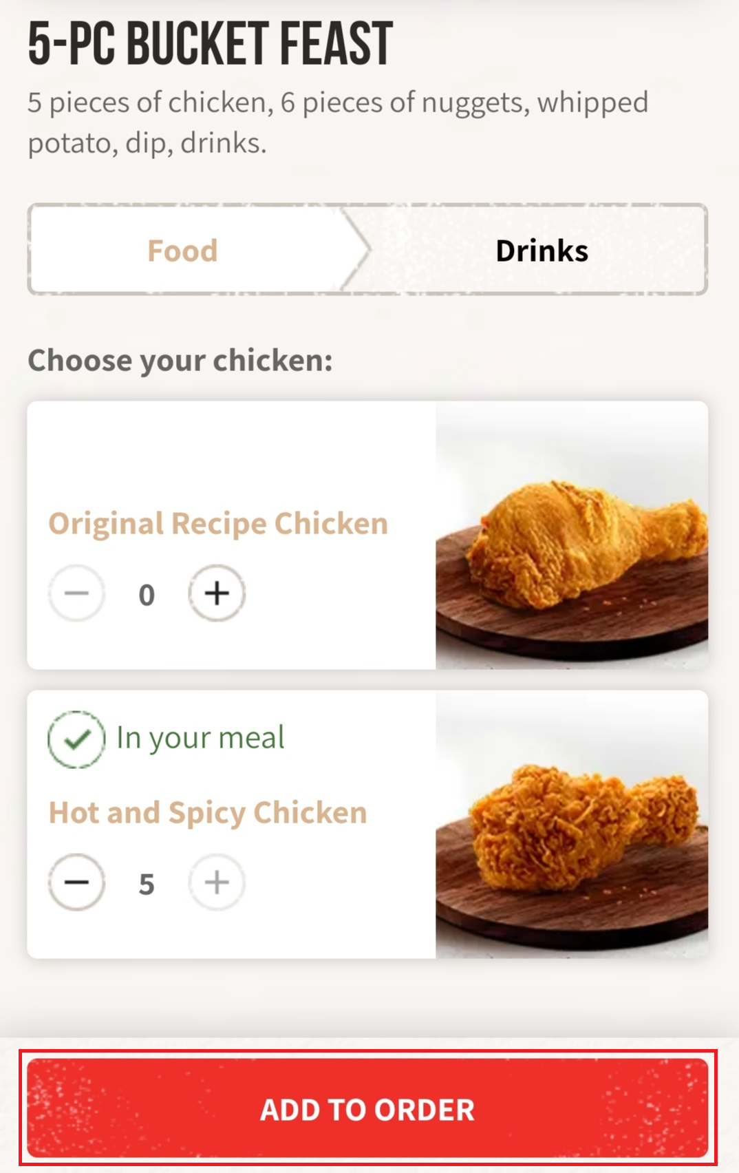 步骤3:选择原味/辣味炸鸡。然后,点击「Add To Order」。