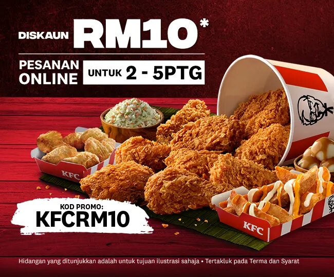 这项优惠是由KFC 官网和手机App 推出斋戒月套餐大优惠!只要消费RM25 或以上并输入有关Promo Code ,就可额外获得RM10 折扣!