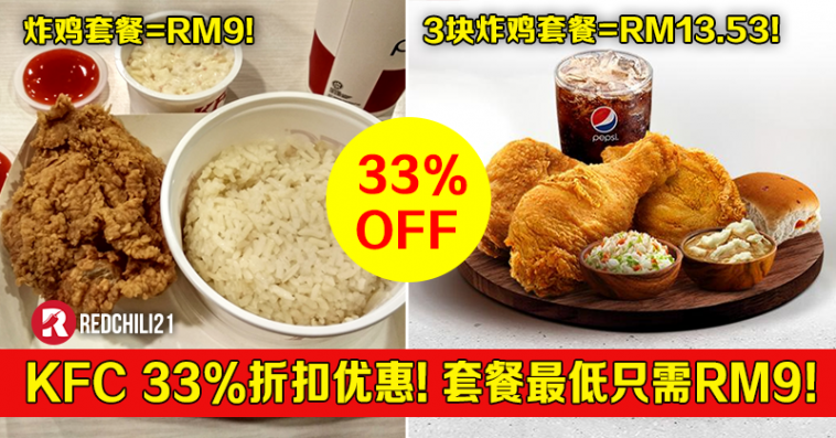 如今在这4月份只要你使用Foodpanda 外卖公司订购KFC 美食就可享有33%折扣优惠啦!套餐最低只需RM9!